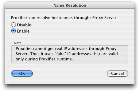 Notes: If the feature is enabled - Proxifier will process DNS requests for all applications. However only applications that match a Proxification Rule will be processed through the proxy server. Proxifier captures DNS request of the applications that use only standard functions to resolve hostnames. Programs that implement specific DNS capabilities will not be proxified. For example 'nslookup' tool will not be proxified.