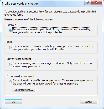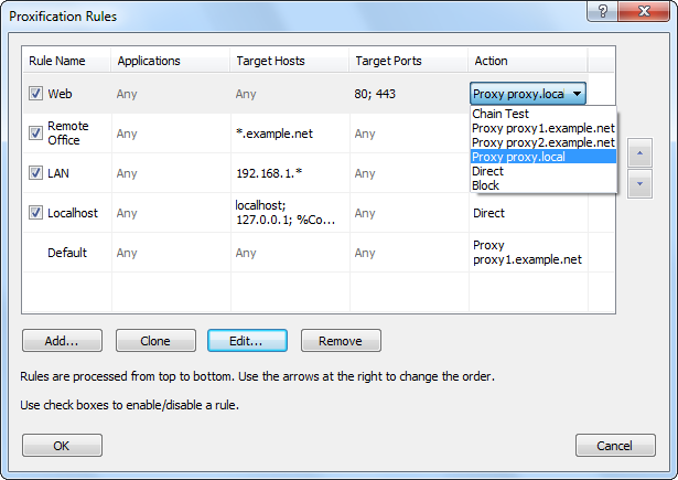 Management and organization of Proxifier configuration files (*.prx) has been improved and the function has been renamed to Profiles. The key features of the new approach are:
