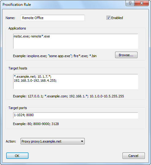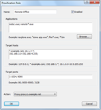 Rule configuration has been redesigned to be much more comprehensive and flexible. Applications and target hosts can be specified as wildcards (e.g. inet*.exe, 192.168.1.*, etc.).