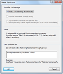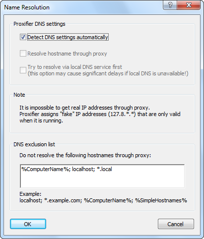 Now you can specify the hostnames that should be resolved with local DNS when Proxifier is configured to process hostnames through a proxy. This feature is useful when you need to work with LAN and Internet connections at the same time.