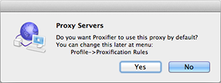 Proxifier will ask you whether or not you want to use this proxy by default. Click Yes to set it as the target for the Default Proxification Rule. You can change this anytime later at Proxification Rules.