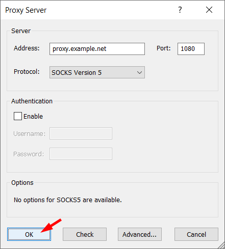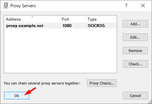 Your proxy server will appear on the list; click OK to confirm the use of this server.