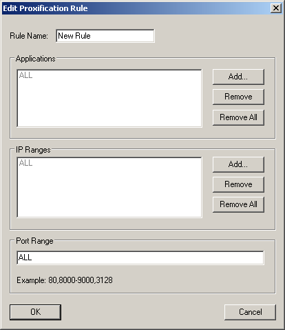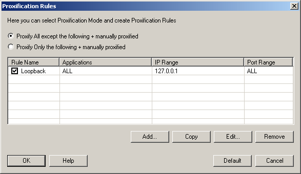 To access this feature please click Proxification Rules in the Options menu. The following dialog window will appear: