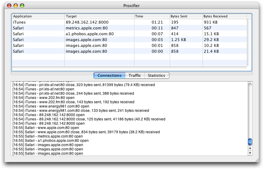 In this window Proxifier displays the information about connections, errors, warnings, etc. in the form of text messages.