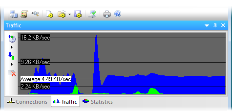 The Traffic pane allows you to view the graphic presentation of the data on the amount of information being transferred.